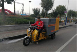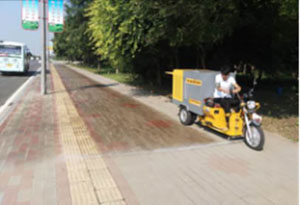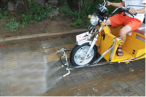 1、人行道沖洗:車輛體積小,運動靈活,配置各種角度噴頭,沖洗角度可360度任意調整,可上人行道沖洗,也可在人行道下方沖洗,相比人工打掃效率高出數倍,效果更好。